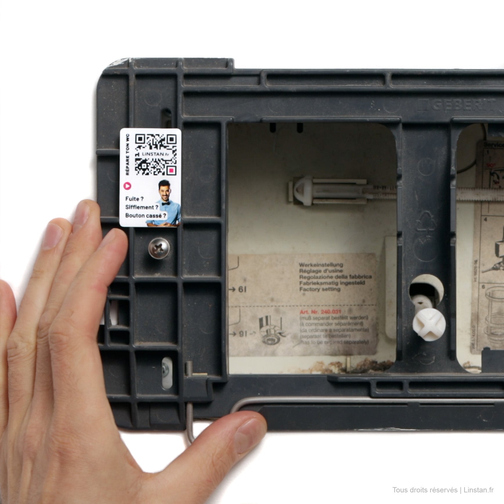 Wenn das Entleeren Ihrer Toilette lange dauert, liegt das an Kalkablagerungen. Um dies zu beheben, müssen Sie die Schüssel entfernen, den Kalk abkratzen und die 4 Manschettendichtungen von Geberit ersetzen. Schriftliches Tutorial.