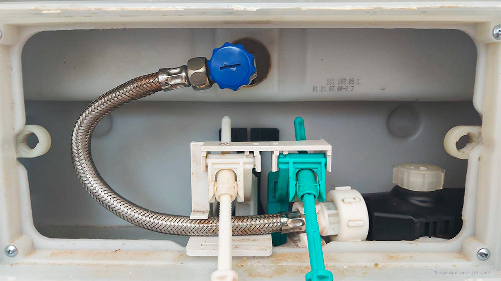 Si tu as le robinet flotteur noir et blanc, je te conseille de le remplacer par cette dernière génération, plus compacte et accompagnée de son flexible.
